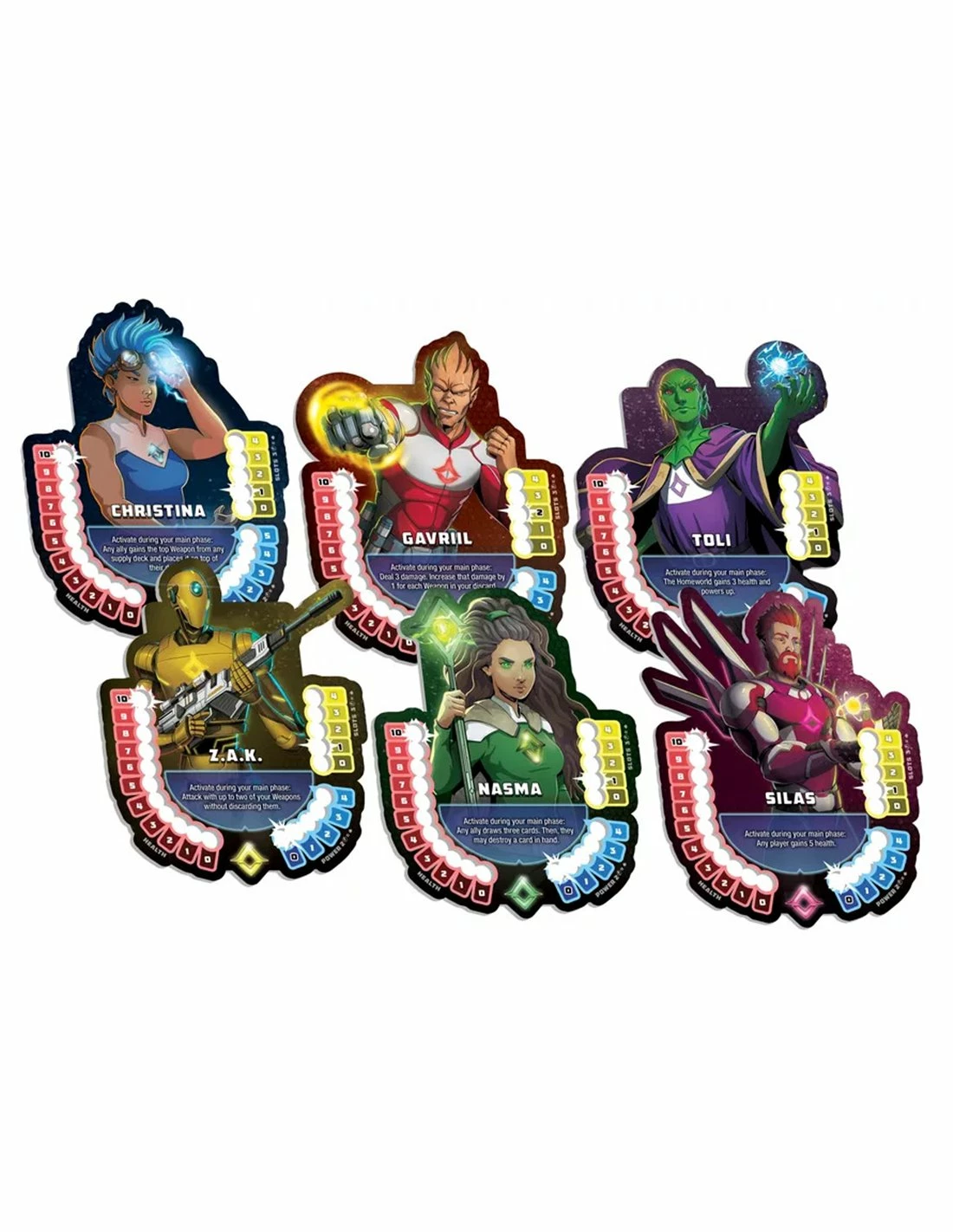 Astro Knights is a cooperative deck building game where your deck is never shuffled. Your goal is to defeat the Boss before it destroys your team or the Homeworld you’re defending.