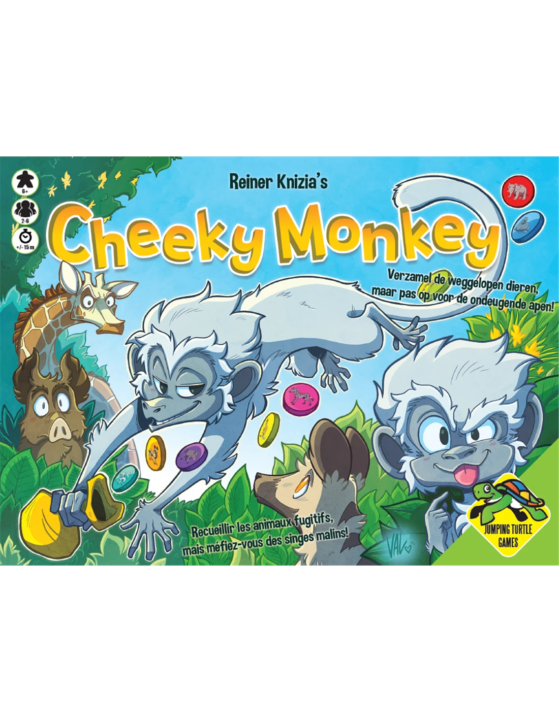If a player draws a monkey, he can either keep the monkey (as with any other animal) or he can swap the monkey for the chip on top of an opponent’s stack.