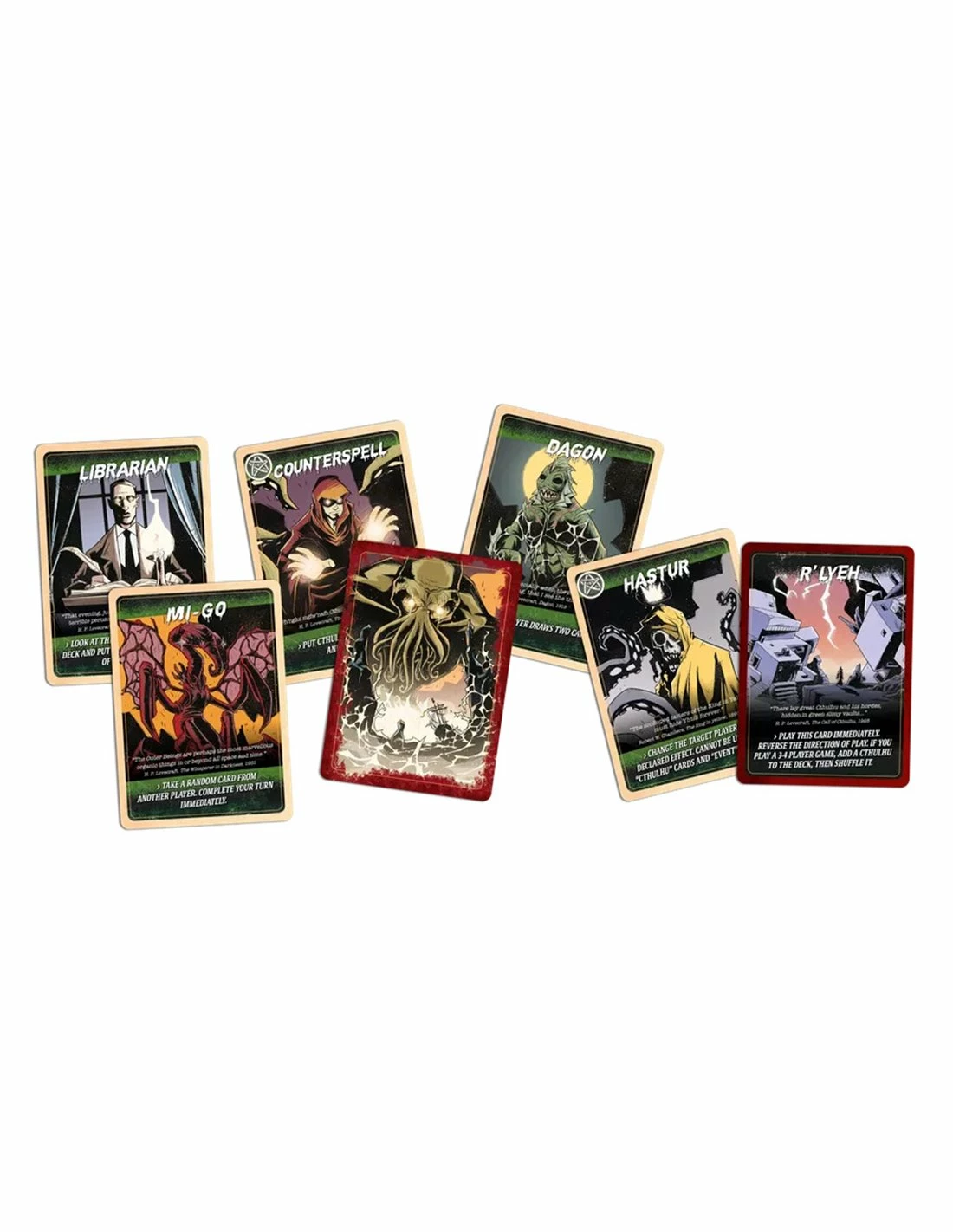 If you draw a Cthulhu card, you must play it immediately, and if you can’t pass it to another player or get it back into the deck, you lose the game (and Cthulhu destroys the earth, so basically everybody loses, but you die first, so there is that)!