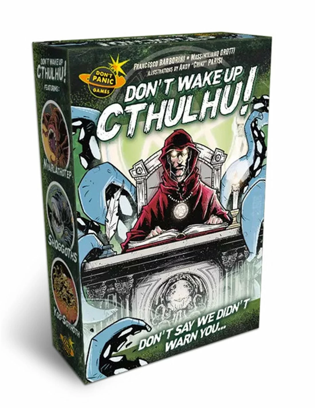 The stars are in alignment and great Cthulhu is finally ready to wake! Your cult has been working on it for centuries, but on second thought… is this really such a good idea? Conjure up all the nefarious entities of the Cthulhu mythos and be clever in how you use their effects, so you’re not the one who dooms us all! Honestly, your rivals would make much better appetizers for the Great Old One!