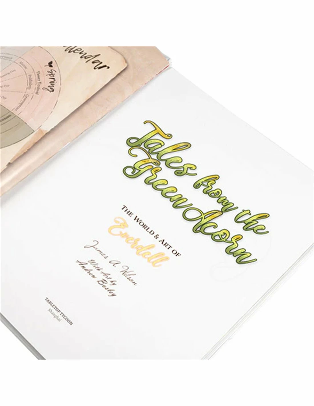 Everdell leaps to life! With gorgeous illustrations from Andrew Bosley and never-before-seen lore written by James A. Wilson himself, there’s so much more Everdell to see inside these pages. Learn of the humble critters who make their homes beneath the boughs of the Ever Tree, or those undaunted creatures who seek adventure into the great unknown. Many remarkable stories are contained within this tome, so pull up a chair, settle in beside the fire, and immerse yourself in the Tales from the Green Acorn hardcover book!