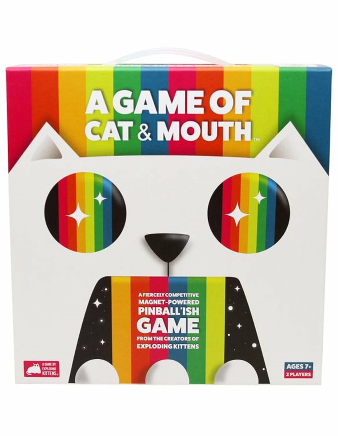 A Game of Cat & Mouth is a two-player game in which players use a magnetic cat’s paw to shoot balls at one another.