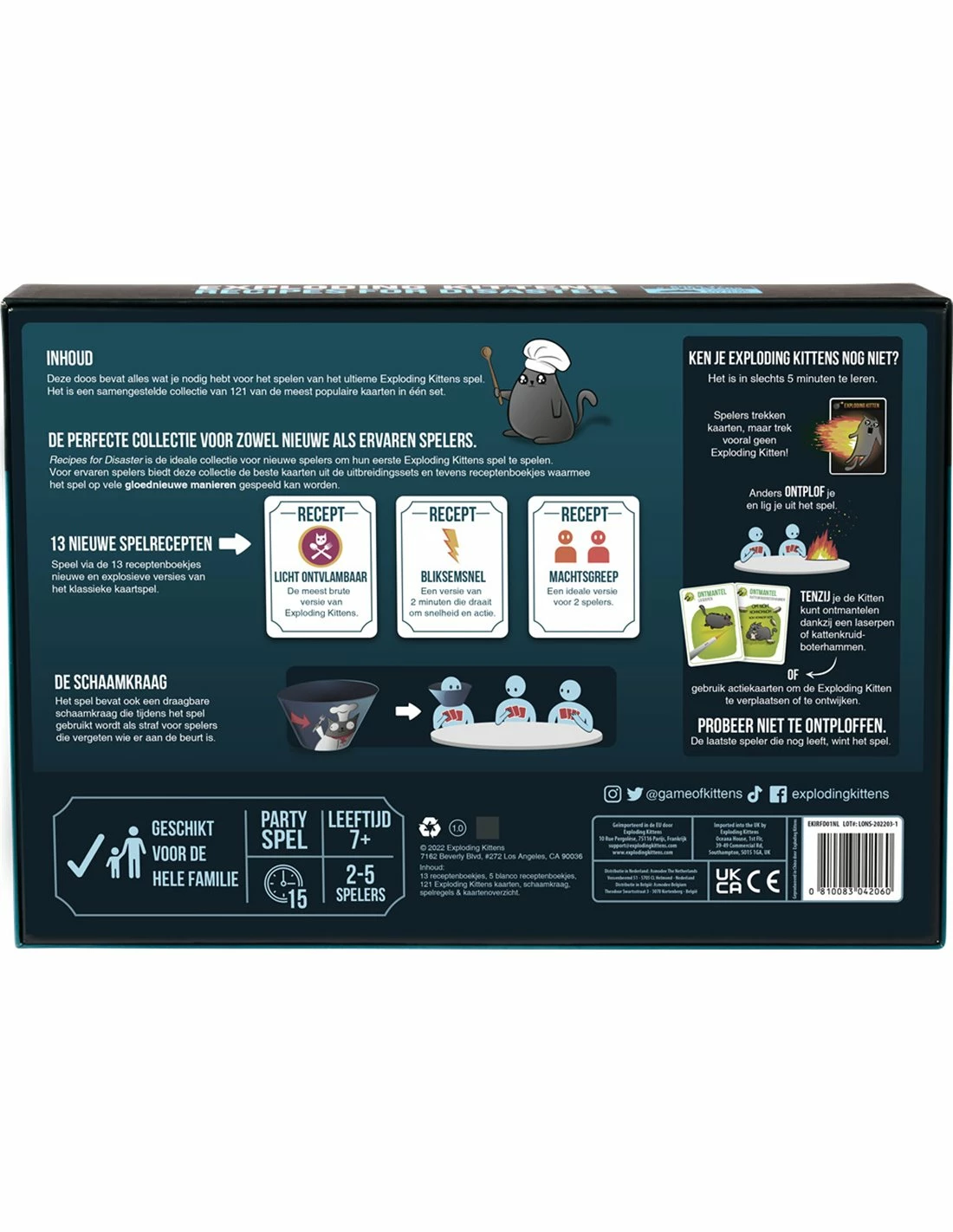 Recipes for Disaster has everything beginners need to play their first game of Exploding Kittens. For more experienced players, itβs got all the best cards from our expansions, as well as Recipe Booklets used to unlock over a dozen brand new game modes.