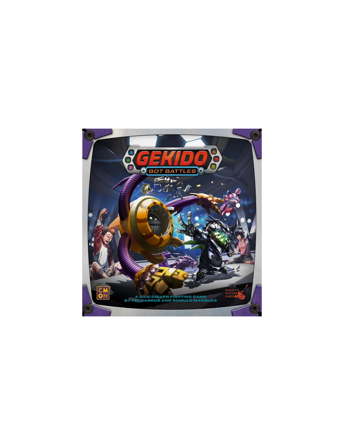 In the not-too-distant future, the most entertaining sport in the world requires killer reflexes, a passion to succeed, and a degree in science or engineering. Bot battling is all the rage, and Gekido: Bot Battles gives 2-4 players the chance to enter the arena and face off in 30-minute fights. Each round, the bots lock onto a target, then roll dice to execute attacks. Through cunning moves and swift strikes, players can activate secret powers in the arena and eliminate the competition. The last bot standing takes home the electric glory!