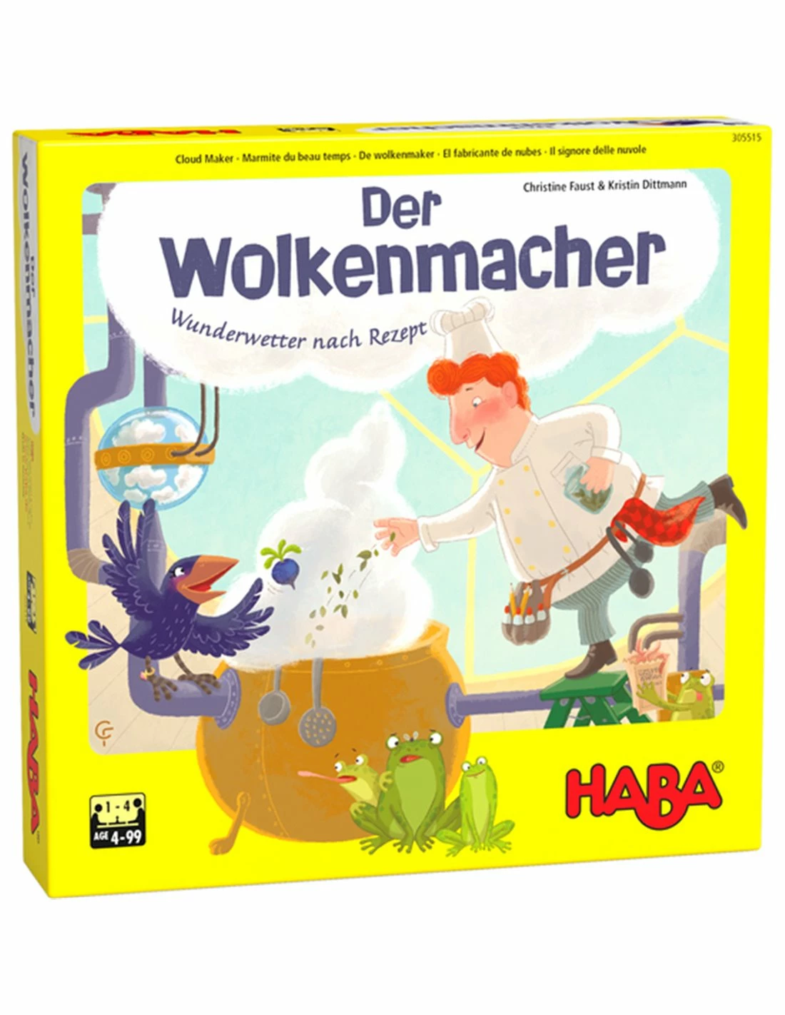 The Cloud Maker and the crow always cook up the most unbelievable weather together! But when the cloud maker is gone, the crow needs to do everything alone, unless the players are willing to help! With a little luck from the die and a good memory while looking for ingredient tiles, they can find all the ingredients for the three recipe cards and win the game before the Cloud Maker comes home.