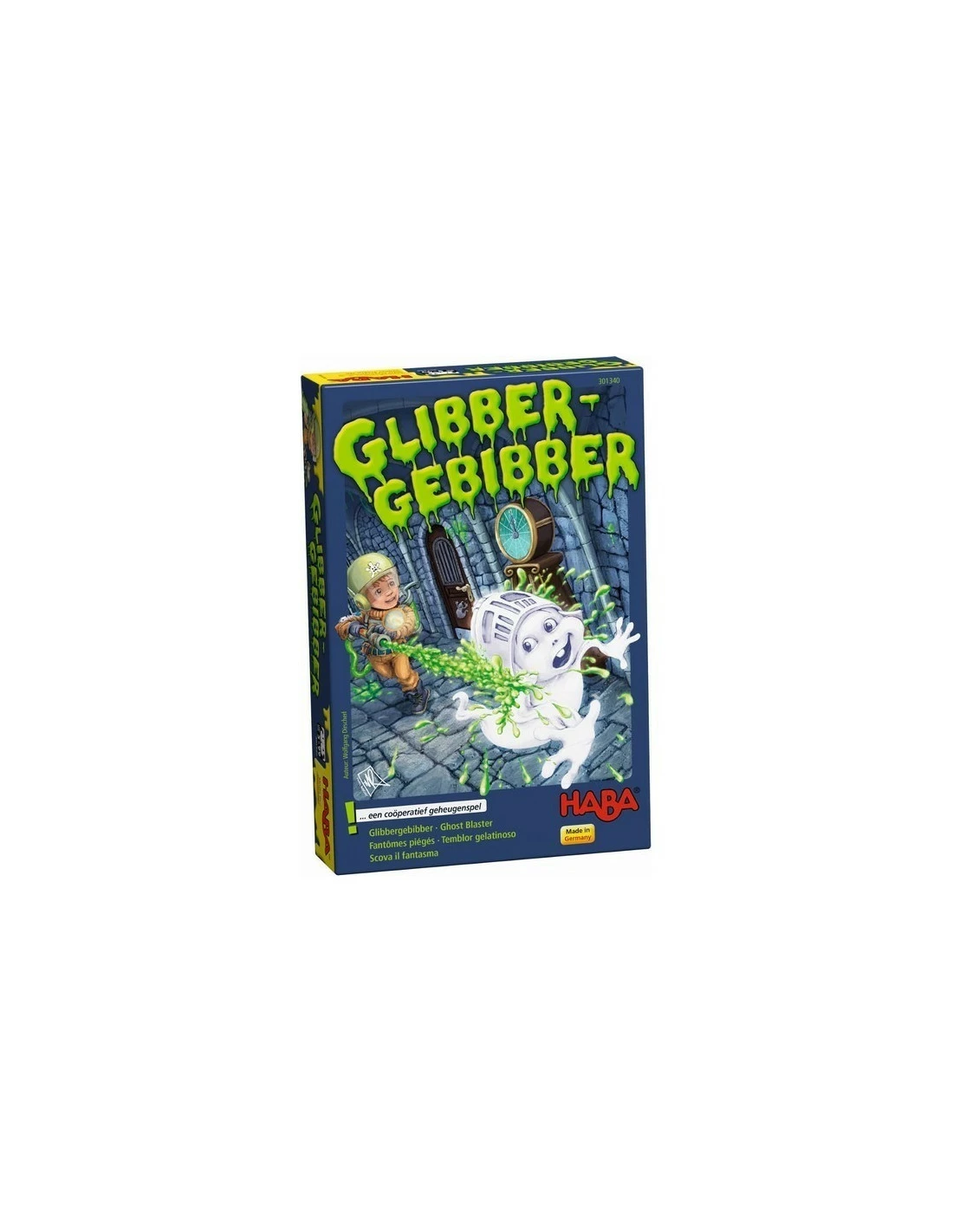 Together in Ghost Blaster, the players try to hit and trap the ghosts with the right amount of goo. Players must roll the dice in sequence and reveal the ghosts using the ghost hunter cards. Once the players have three of the same ghost cards face up, this ghost is caught and can no longer escape. But careful! If the players accidentally uncover a keyhole card, the ghost hunter is caught in the trap and must then go into the dungeon. Players can free him but that takes up valuable time! Their objective is to capture all of the ghosts before the ghost hour is over.