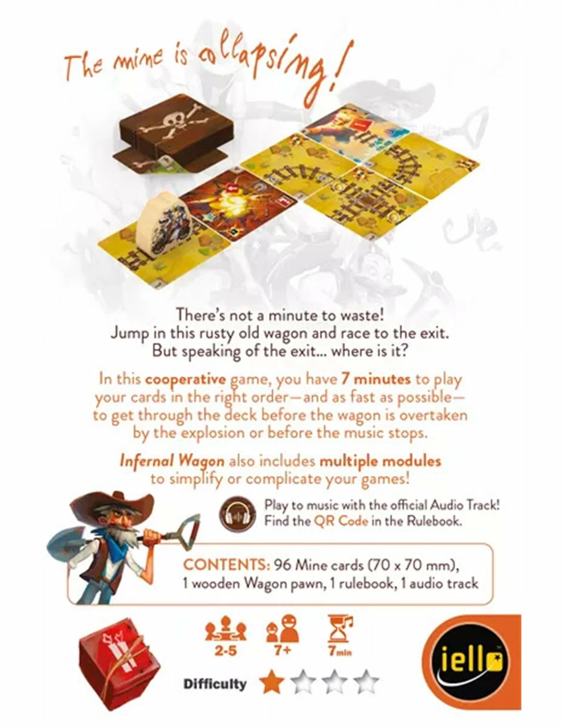 Infernal Wagon is an intensely fun cooperative game in which players must work together to create a path to the exit… before time runs out! But be careful: each card played has a high chance of triggering devastating effects!