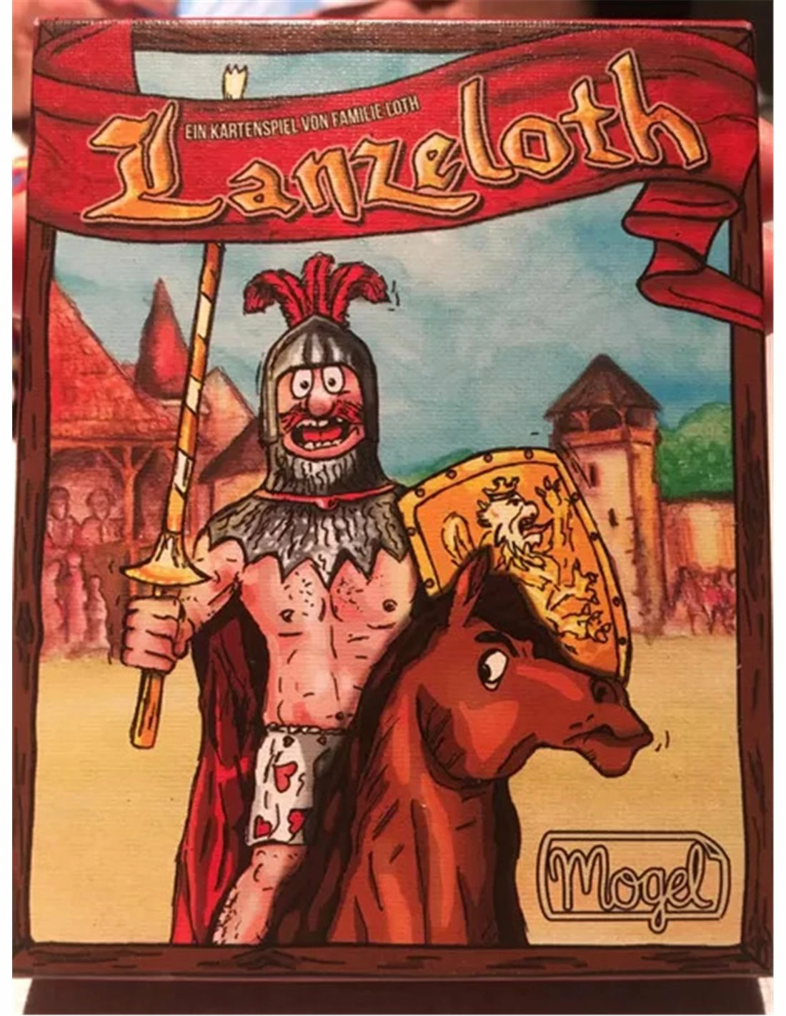 Lanzeloth is a card game where every player builds a knight in front of them consisting of five cards (head, lance, shield, body, shoes) and an additional horse card. All cards start face down. All body parts have different strength values from zero to five and the horse card has special powers for the tournament round.