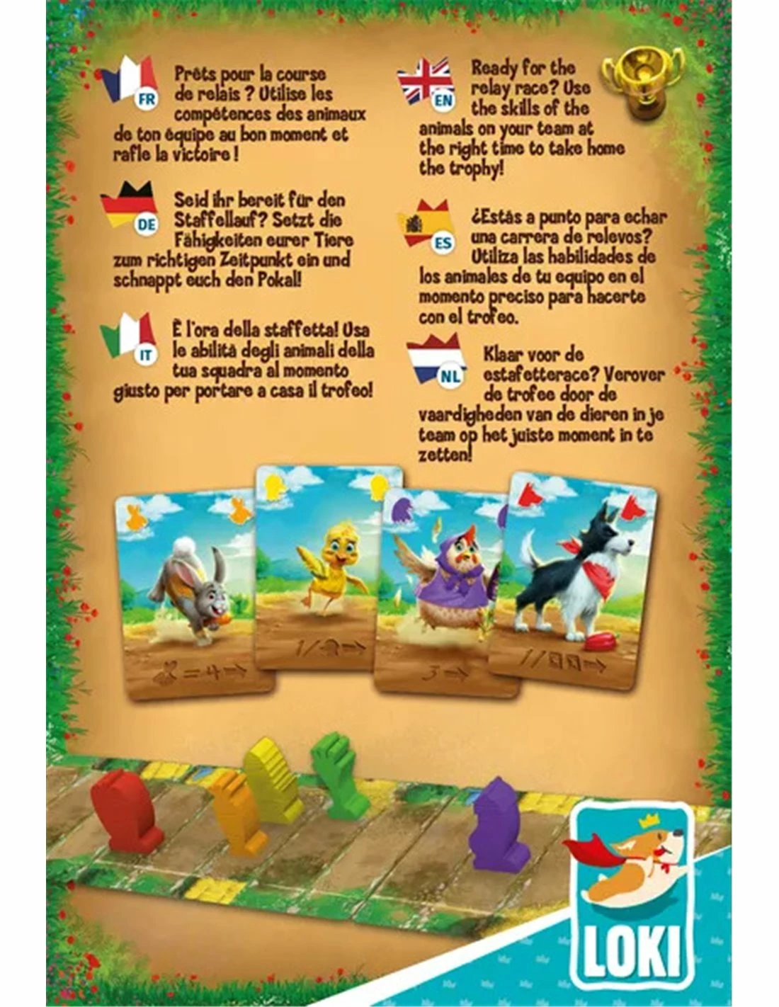 What’s all the fuss in the barnyard? Ducklings, rabbits, dogs and roosters: all animals are ready to race. Teammates call out to each other and cheer: the relay race promise to be thrilling, with unexpected developments!