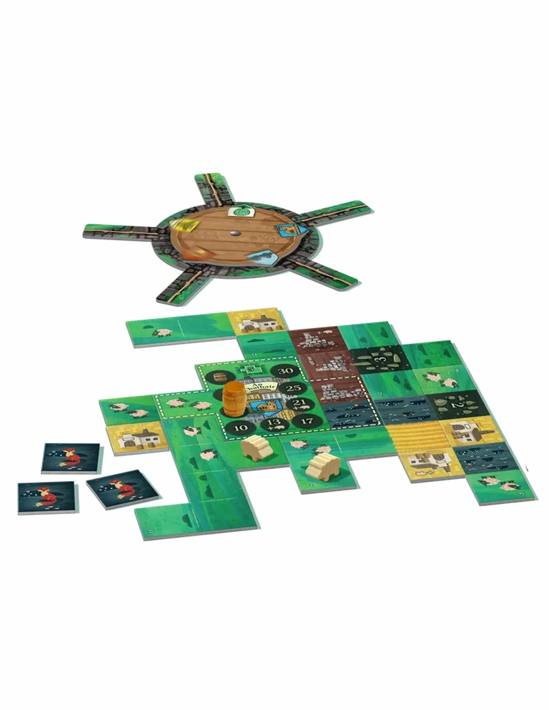 In the tile-laying family game Tipperary, players are challenged to create their perfect vision of an Irish county by placing polyominoes and thus collecting sheep, castles and whiskey. The linchpin ist a ‘magical stone circle”, that decides which of the tiles you can choose from. After twelve rounds, one player will be named chief of Tipperary.