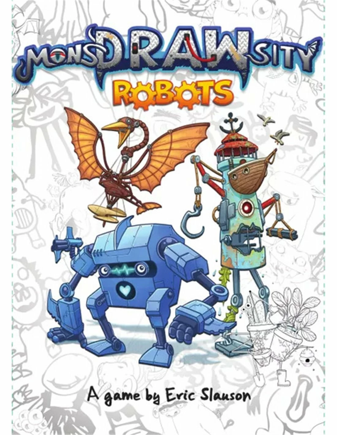 MonsDRAWsity: Robots is the next thematic expansion for MonsDRAWsity, adding 50 more monsters to the game, new variant rules, and a 10th player board! Will you be able to memorize, describe, and draw these magnificent machines, or will your wires get crossed?