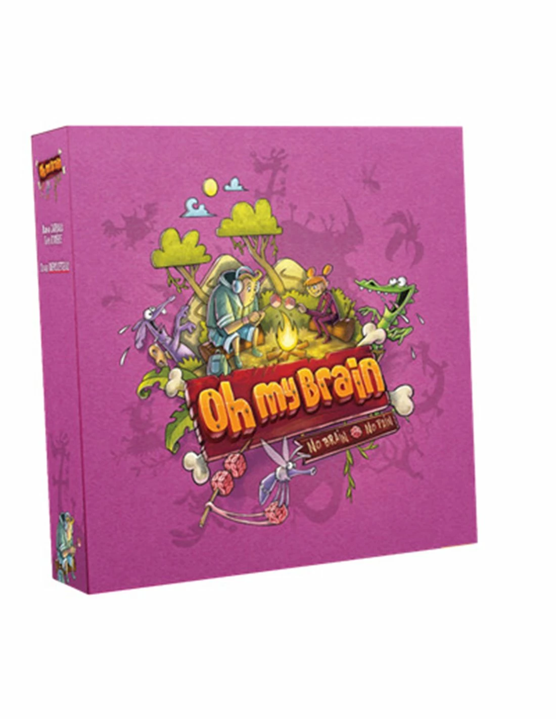 Well – that is about to change! Suddenly, out of the bushes, hordes of zombie animals are rushing towards you. Do they want to steal your marshmallows? Not at all! It’s your brains they want to cube and roast over the campfire. Your goal in Oh My Brain is to rid yourself of these assailants β that is, the cards in your hand β as quickly as possible to avoid gradually losing your mind because losing your brain entirely means being transformed into a zombie…and losing the game!