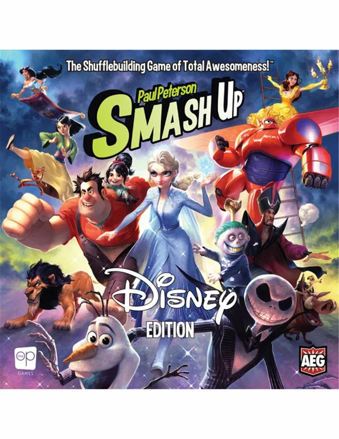 In Smash Up: Disney Edition, players choose two decks of fan-favorite Disney factions and combine their powers to take over bases, earn the most points, and win! Choose two from Frozen, Big Hero 6, Wreck-It Ralph, The Lion King, Mulan, Aladdin, The Nightmare Before Christmas, and Beauty & the Beast to create the most exciting team-ups imaginable!