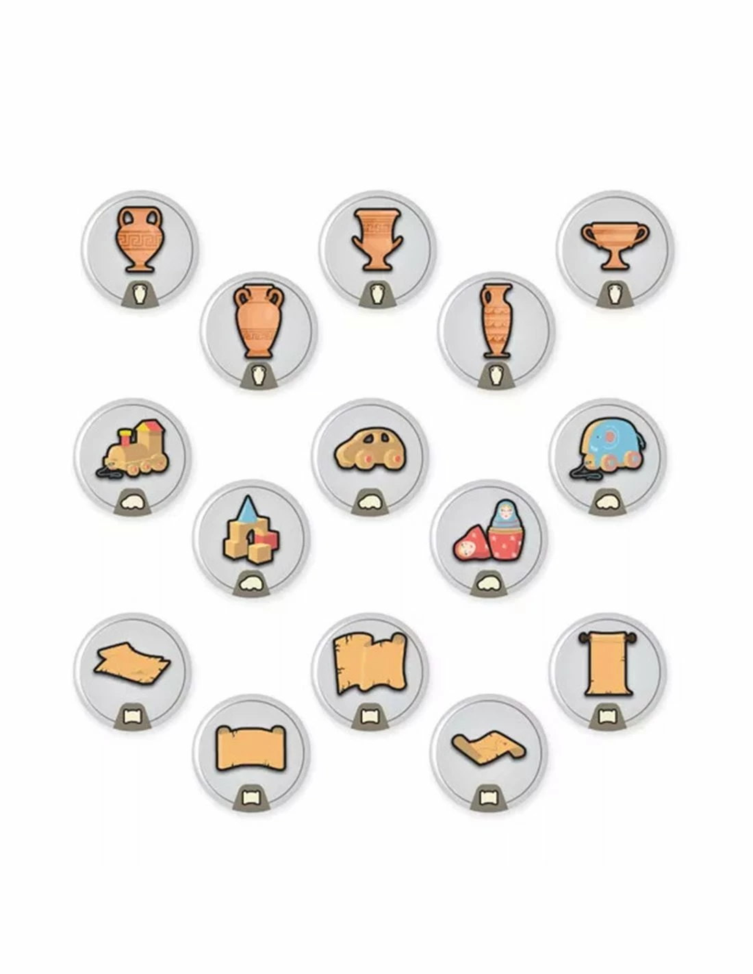 The game ends when the treasures have been collected. Each item is worth victory points, and complete sets of any treasure earn extra bonus points. Whoever has the most points wins!